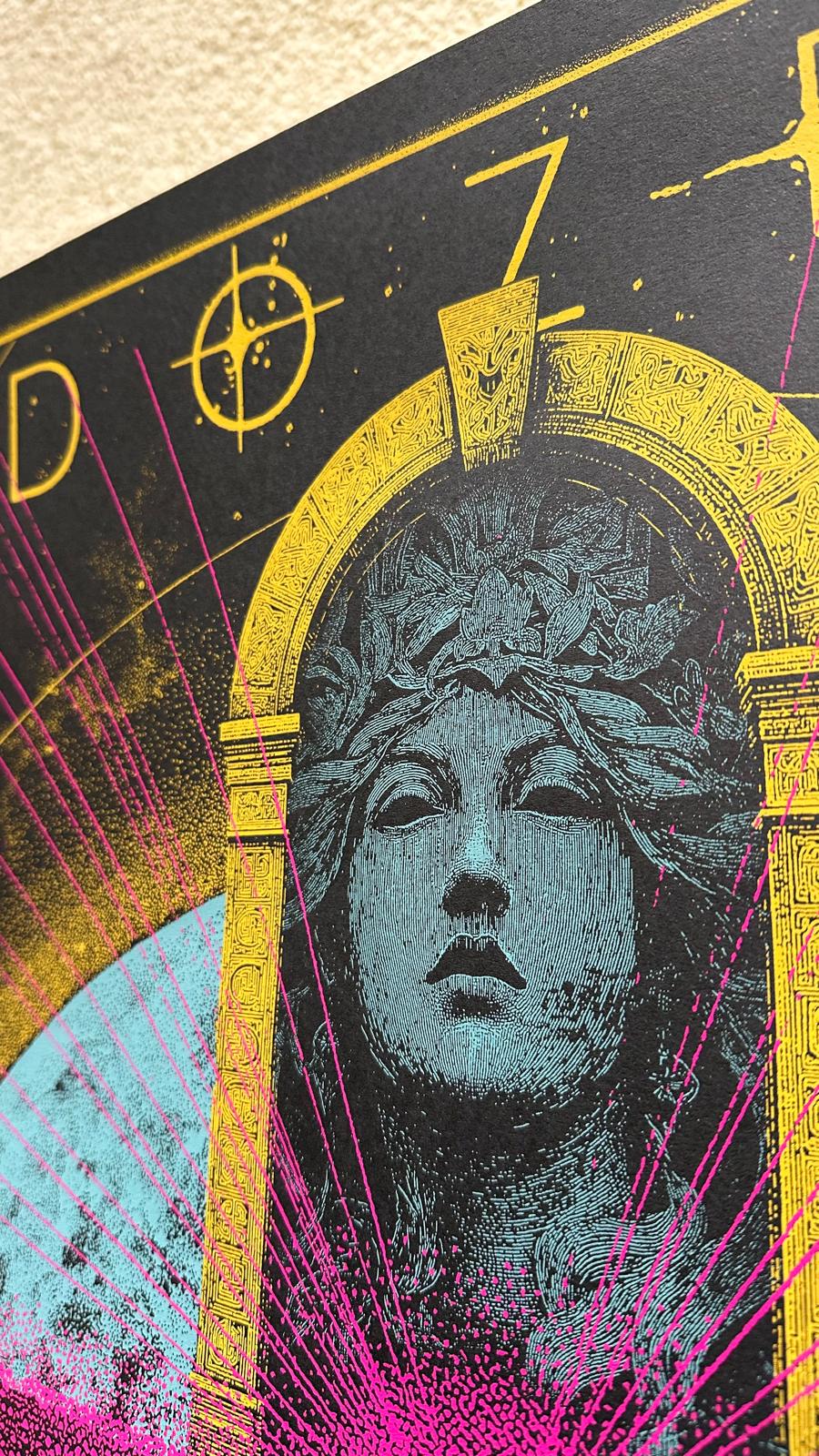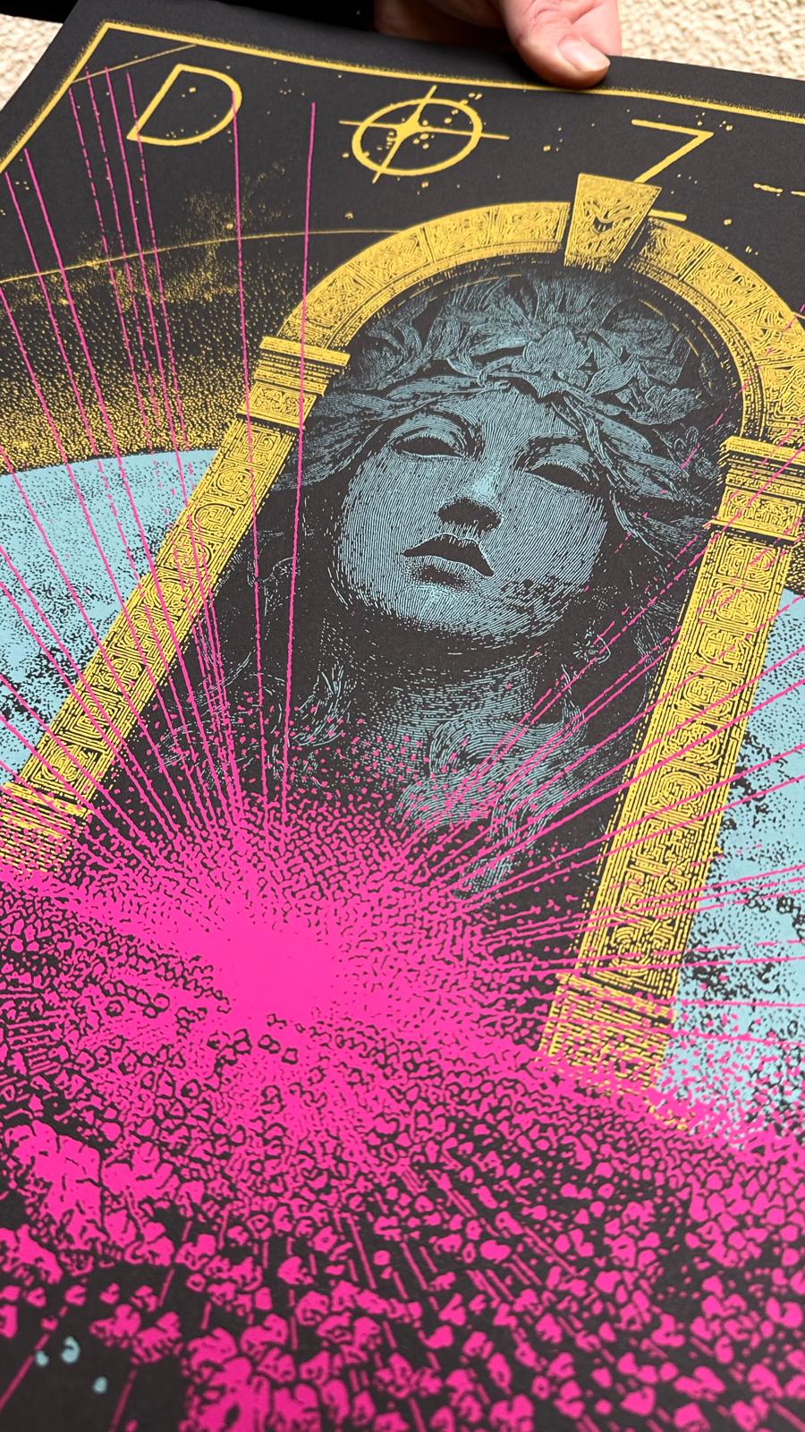 Three screen print on Black 300 g/m² paper in the format 50 x 70 cm in a one-time edition of 30 copies.